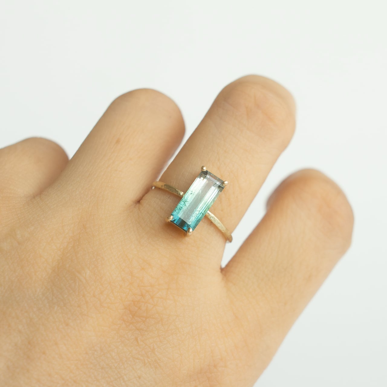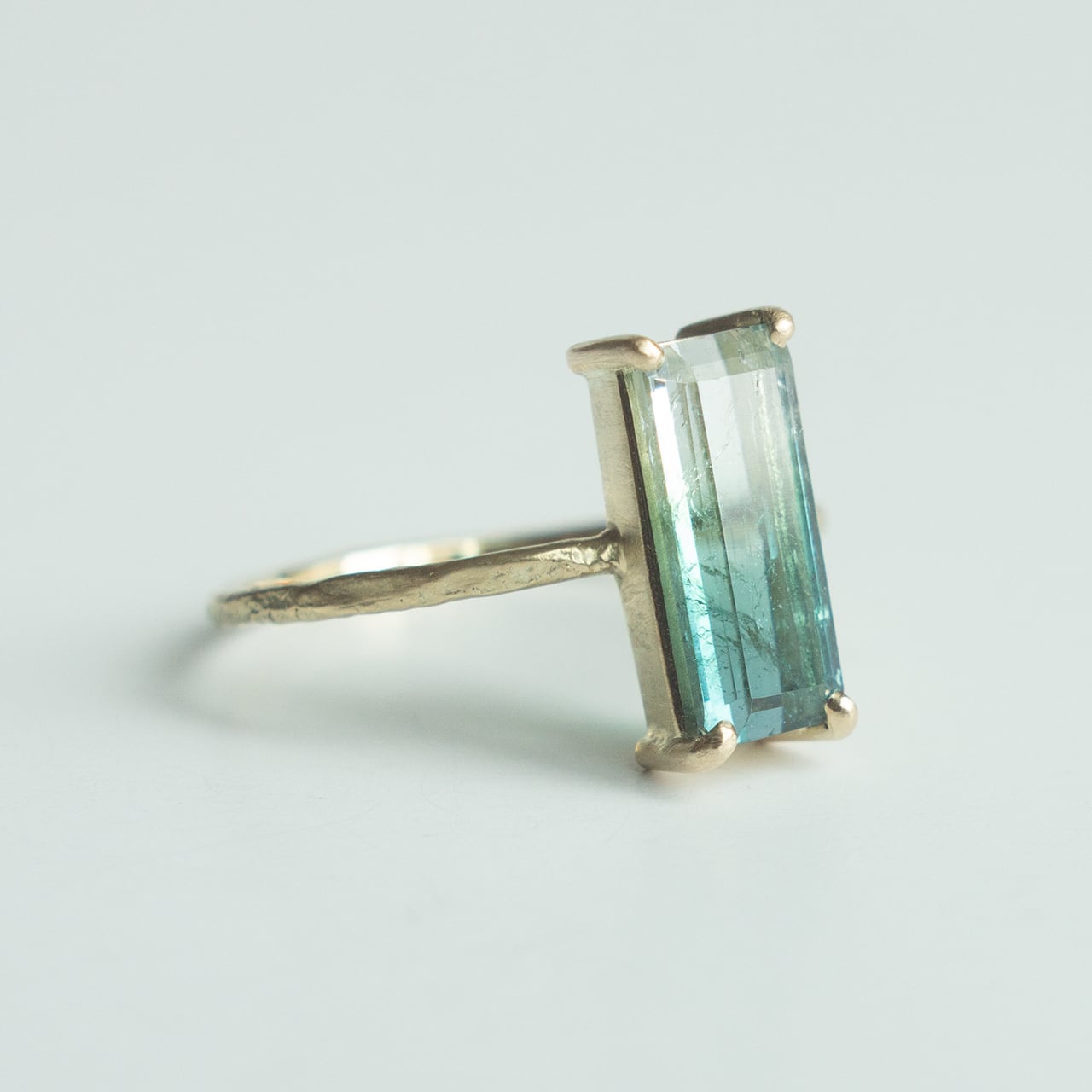 透明感のある結晶の中に、クリアな無色からグリーンへと移ろう爽やかな色合いが広がり、まるでラムネ色を思わせる爽やかな清涼感を感じさせます。