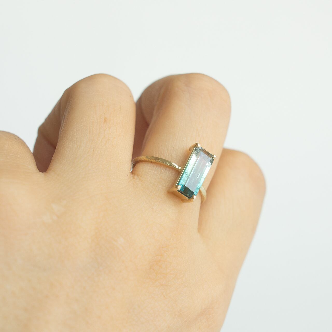 岩肌のテクスチャーを施したRock Ringに、個性的な石を合わせた一点ものリング。