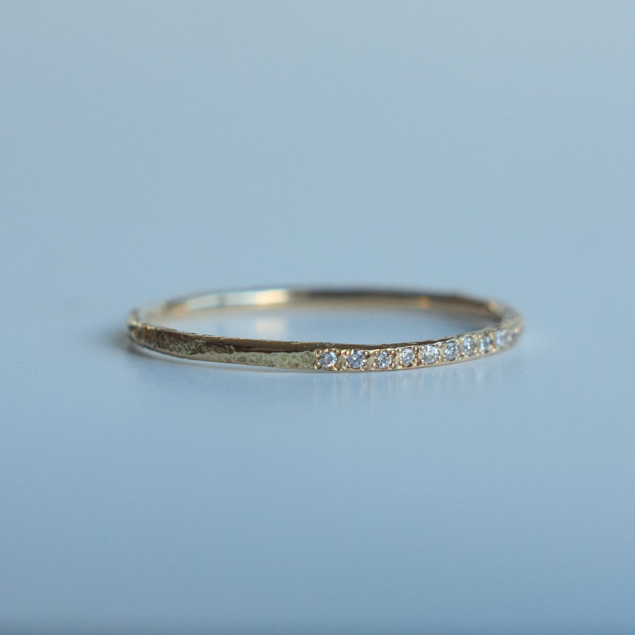 岩肌を模したRock Ringに極小ダイヤモンドを留めた、ハーフエタニティ。
