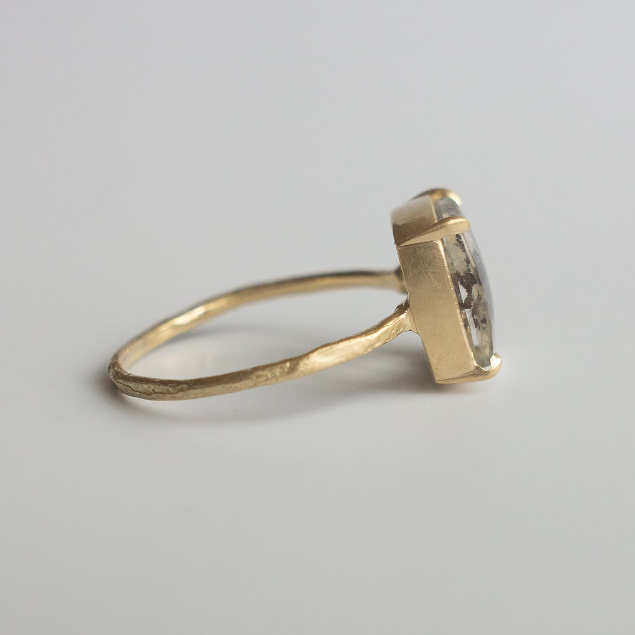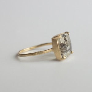 岩肌のテクスチャーを施したRock Ringに、個性的な石を合わせた一点ものリング。