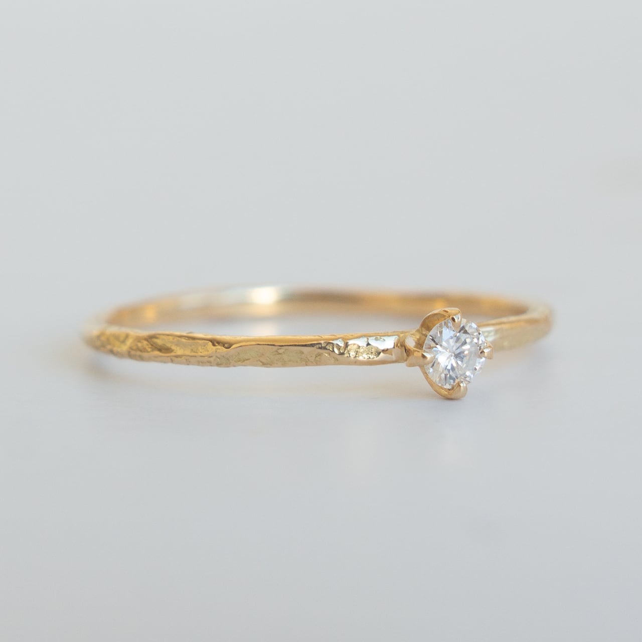 クレーターのような凹凸と、繊細な印象の1粒ダイヤ